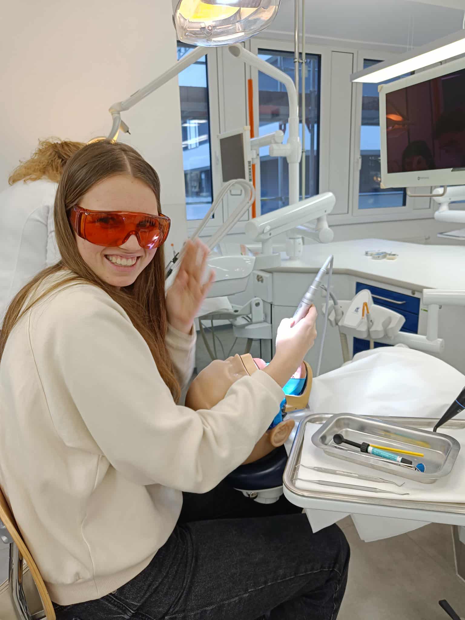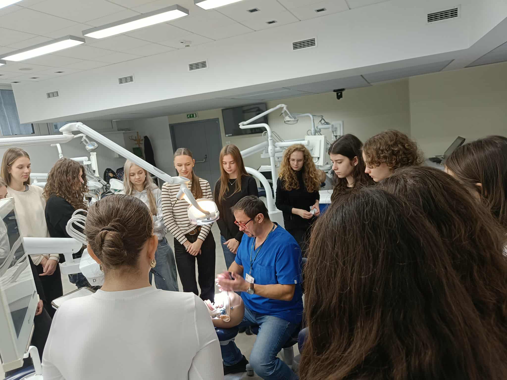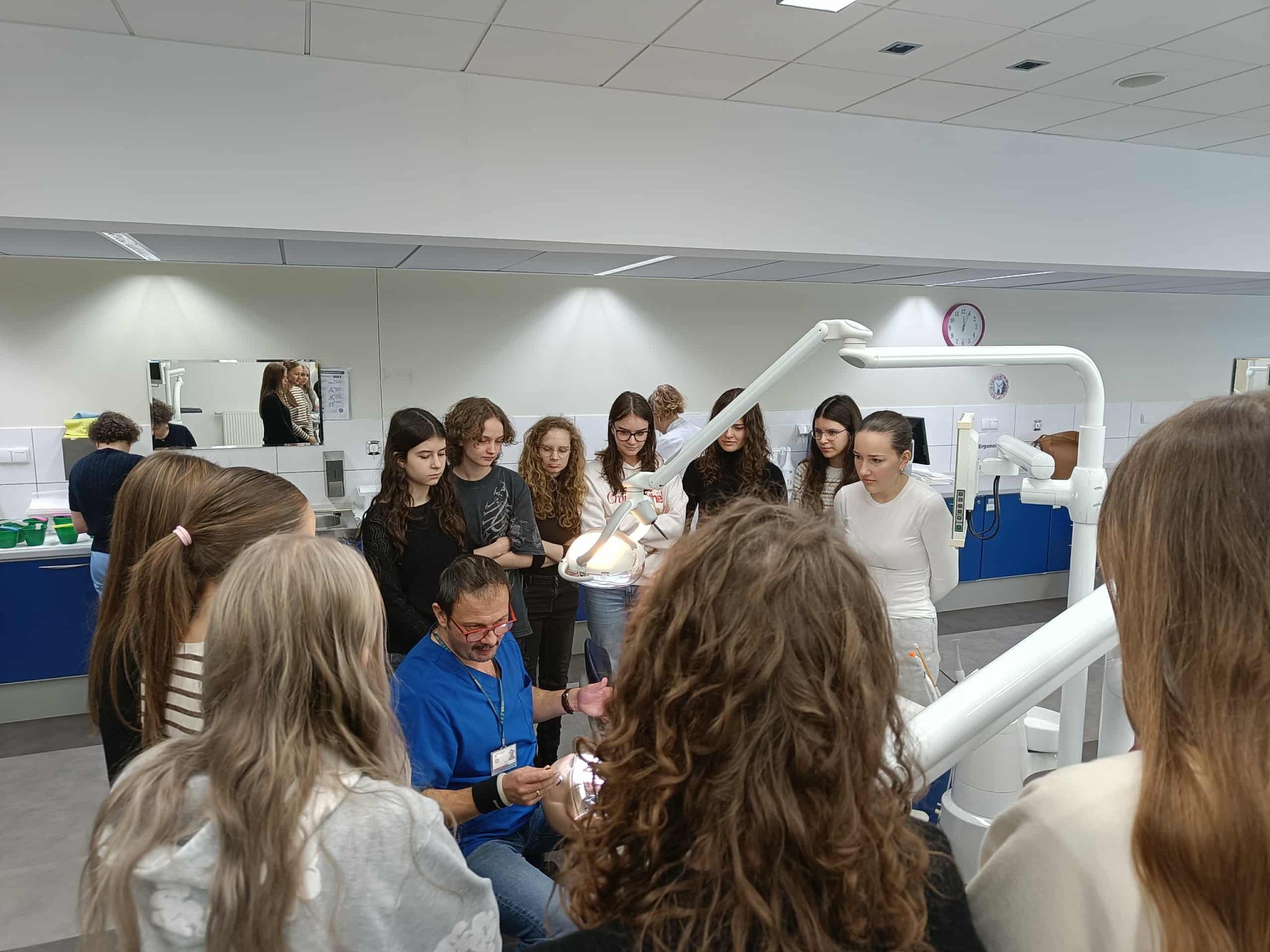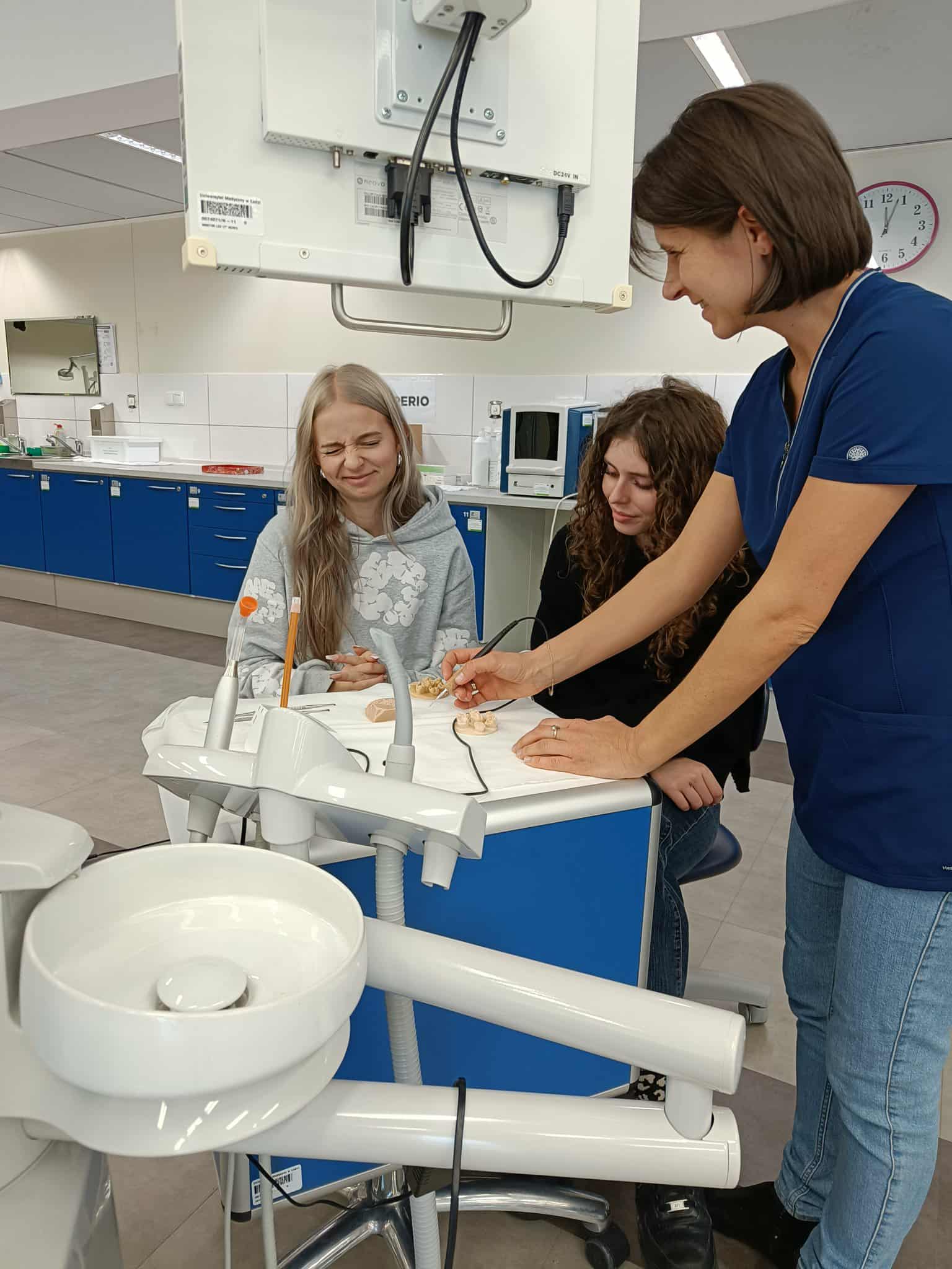 Uczniowie nie tylko zaglądali w głąb uśmiechu nauki, ale też samodzielnie wykonali wycisk szczęk, wyprofilowali zęba woskiem metodą kropelkową, zarobili masę wyciskową (nie, to nie była plastelina, a prawdziwy alginat) i nawet założyli plombę – na szczęście tylko ćwiczebną! Było dużo biologii, jeszcze więcej fizyki, a chemii… cóż, chemia między uczniami a stomatologią zdecydowanie zaiskrzyła.