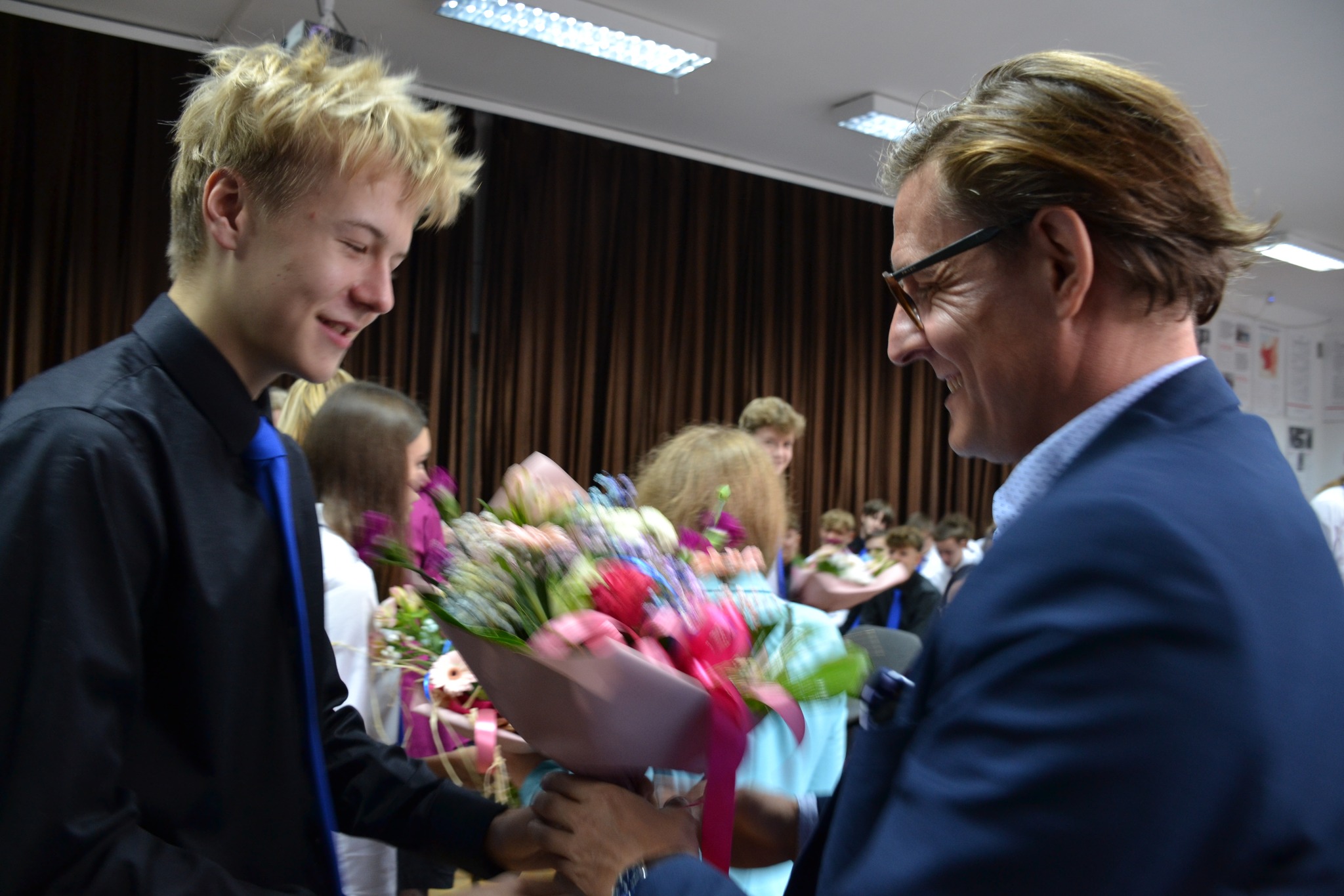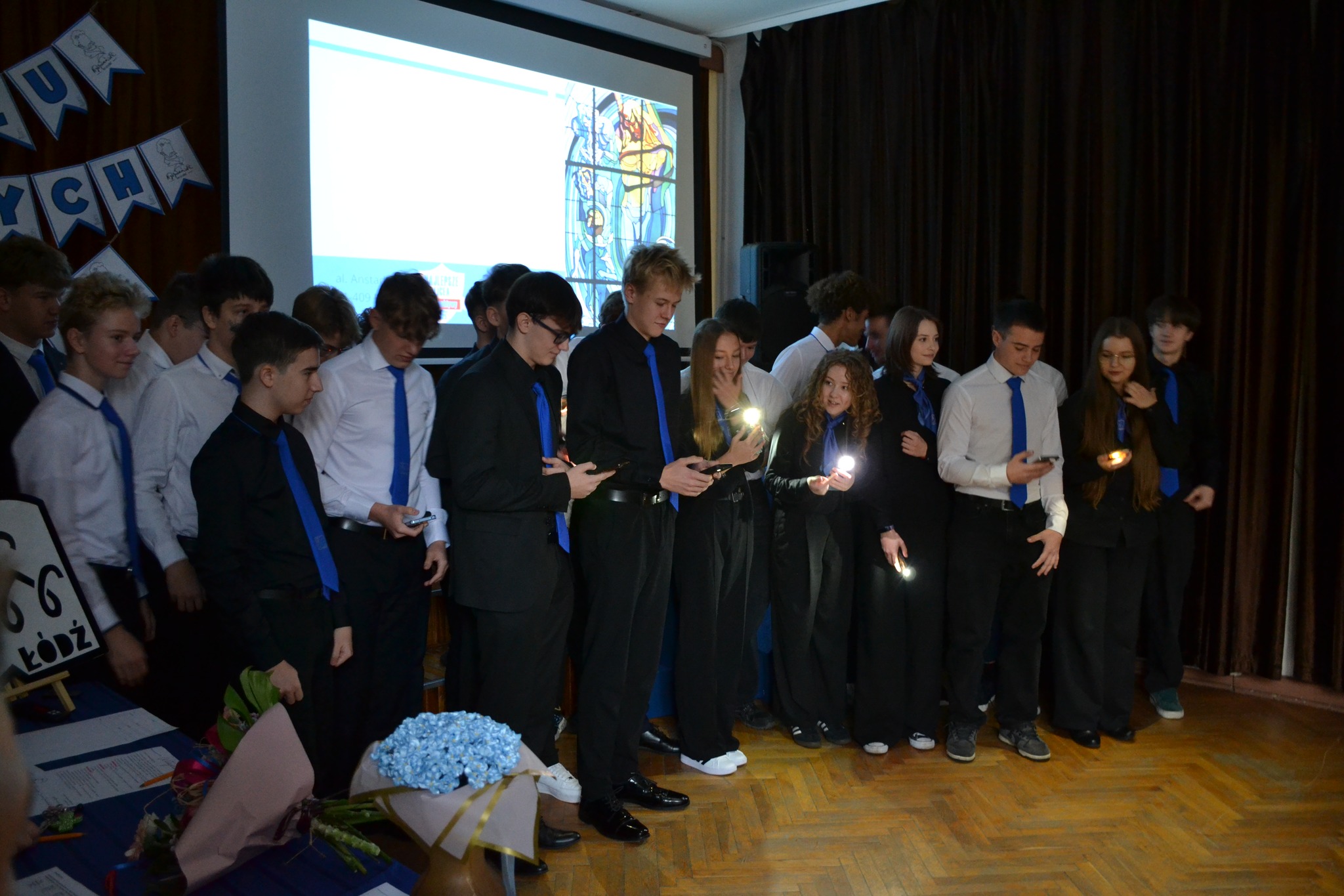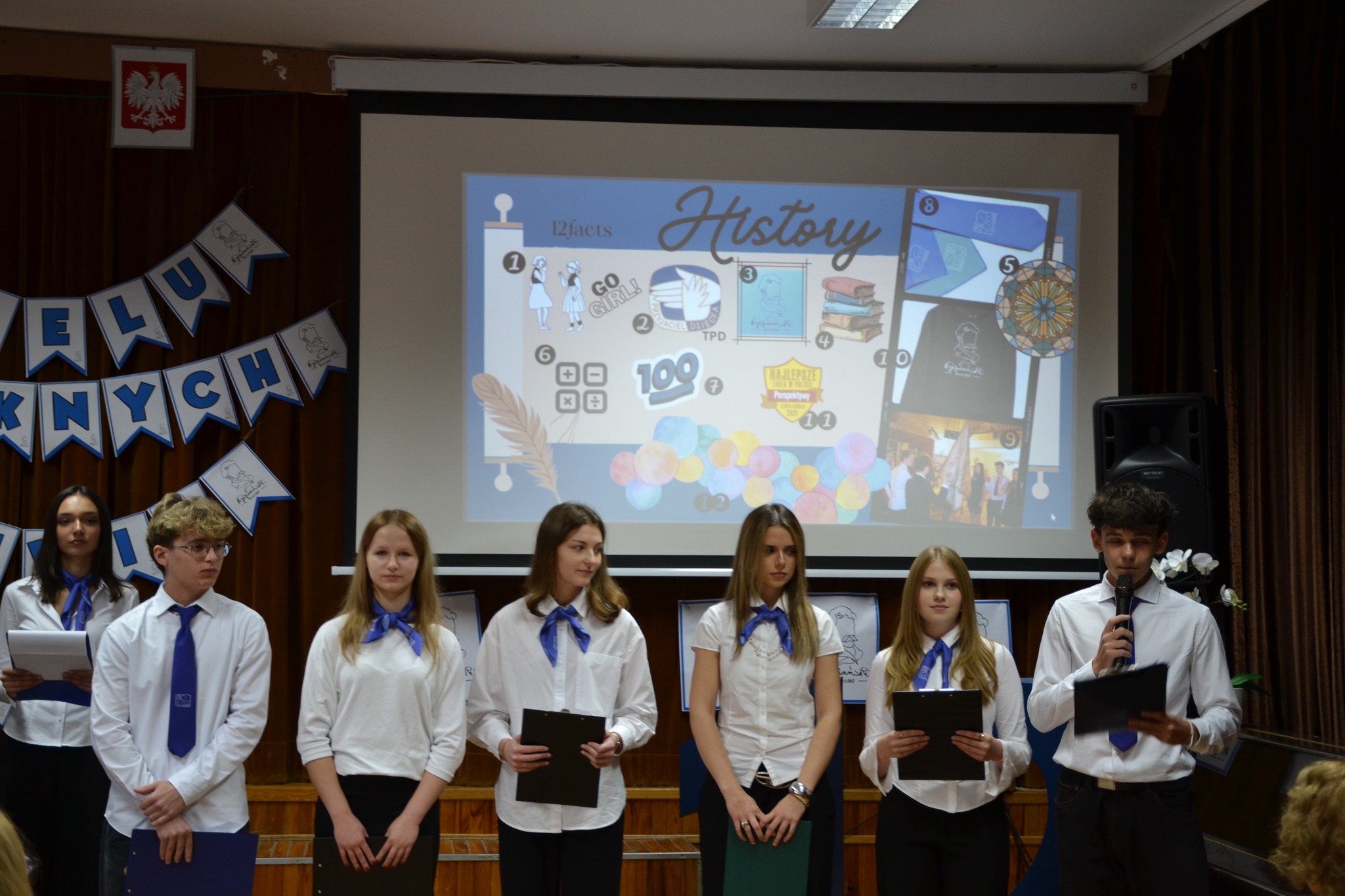 Oficjalna część obejmowała uroczyste ślubowanie na sztandar szkoły, przemówienie Pani Dyrektor Doroty Basny oraz wystąpienie nowo wybranego Prezydenta Rady Młodzieży Jana Majchrowskiego.