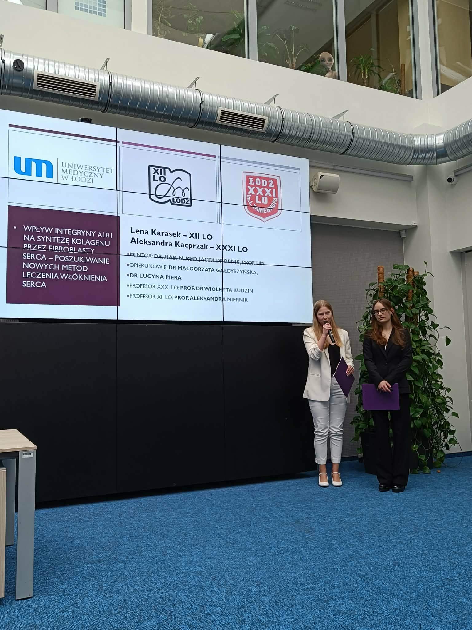 Nasze liceum reprezentowała uczennica Lena Karasek, która wspólnie z Aleksandrą Kacprzak z XXXI Liceum Ogólnokształcącego im. Ludwika Zamenhofa w Łodzi zaprezentowały wyniki swojej pracy badawczej pt. „Wpływ integryny alfa1beta1 na syntezę kolagenu przez fibroblasty serca – poszukiwanie nowych metod leczenia włóknienia serca”.